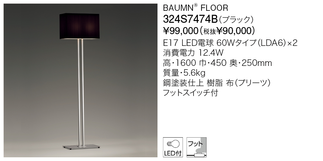 バウムは、細かいランダムプリーツの表情がシンプルな形状にマッチしたボリュームのあるシリーズです。空間をあたたかな光で包みこむと共に上質なくつろぎの時間を演出します。