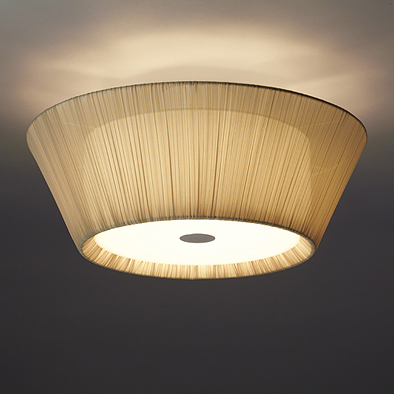 バウムは、細かいランダムプリーツの表情がシンプルな形状にマッチしたボリュームのある照明です。内側はすり鉢状にデザインされ、内部に仕込まれたランプから全体が発光します。光源が目に入らず、空間を温かく包み込みます。同シリーズのペンダント、スタンドと合わせてトータルコーディネートが可能です。バウムⅡはプリーツを採用したデザインです。プリーツの端面をリボンで縁取らずすっきりとしたモダンなディテールに仕上がっています。点灯するとプリーツがきれいに透けるモダンなデザインです。