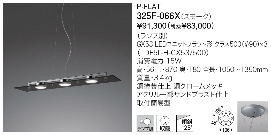 モダンな住空間用にデザインされたP-フラットシリーズの、LEDフラットランプを使用したタイプです。光源の特徴を活かし、薄いフォルムを実現しました。ペンダントとシーリングが揃い、幅広い空間に対応します。