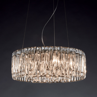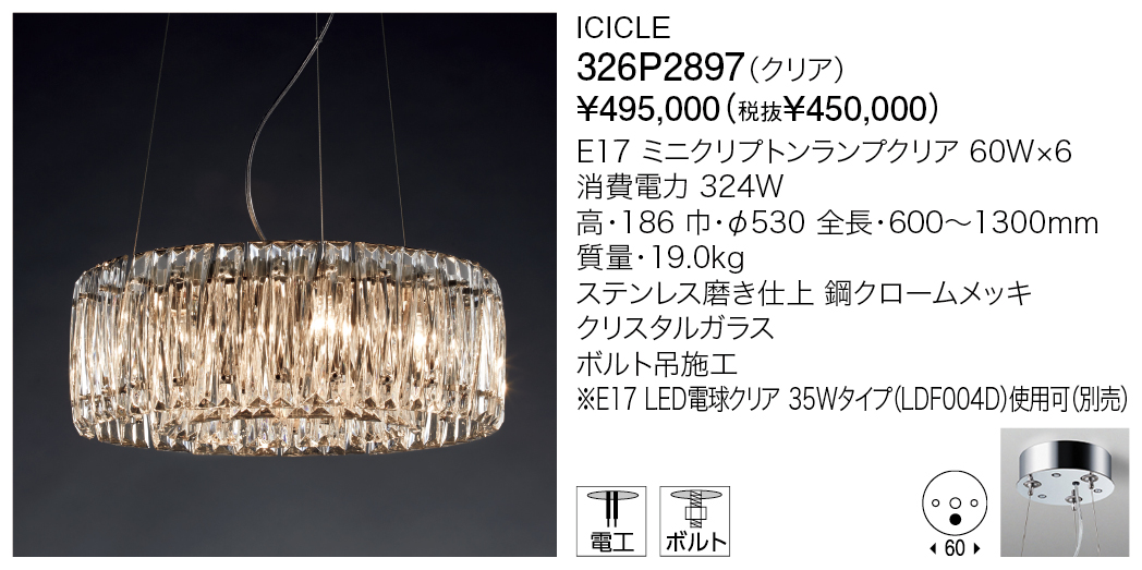 アイスクルは、不定形にデザインされた2種のクリスタルガラスで形つくられたシャンデリアのシリーズ。Icicle(つらら)のごとく、ランダムに光が屈折し、ゴージャスな光のオブジェとして空間のアクセントとなります。光煌めくクリアクリスタルと、華美過ぎず大人の空間を演出するスモークグレーガラスをラインナップしています。