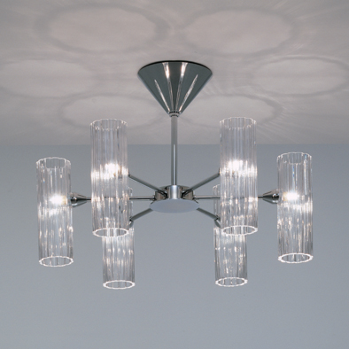 スウィングは、シリンダー状の型ガラスにランプを差し込んだモダンなデザインのシリーズです。透明感の強いクリスタルガラスはひとつずつ手作りで加工され、シンプルなクロームメッキのアームと相まってクールでモダンな雰囲気に小さなきらめきを演出します。