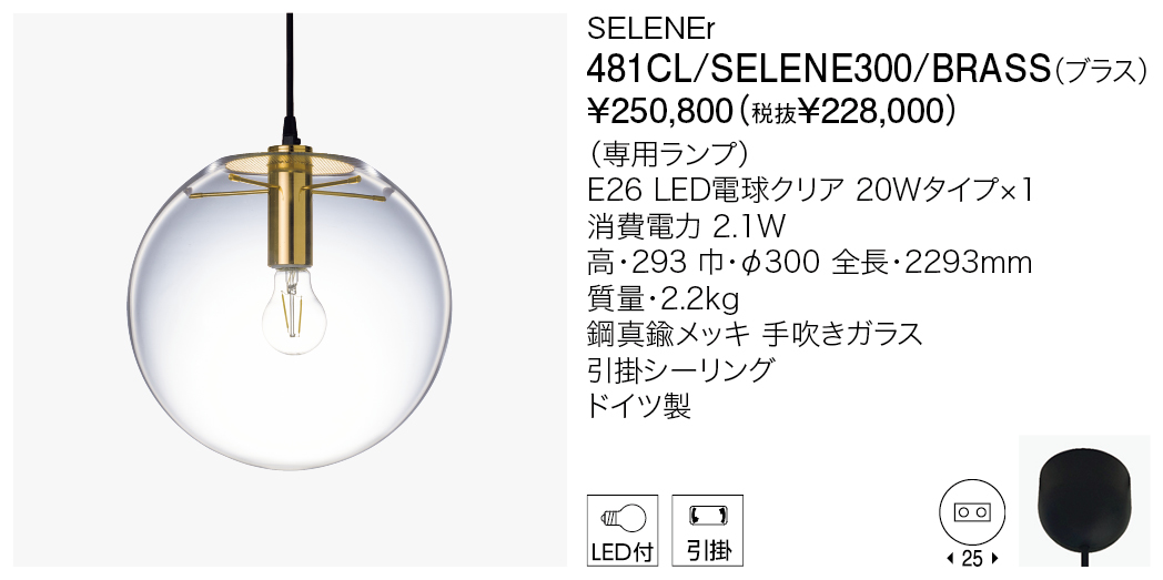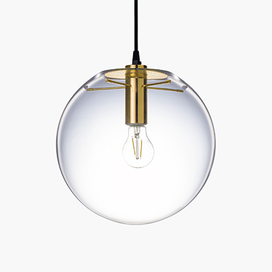 セレネは、クリアな手吹きガラスのシェードが光を通して、温かさと印象的でエレガントな空間を演出する。ペンダントは、ドイツ出身のデザイナー、サンドラ・リンドナーによるもの。5本のアームによって支えられたクリアガラスグローブが、エレガントに宙に浮かびます。