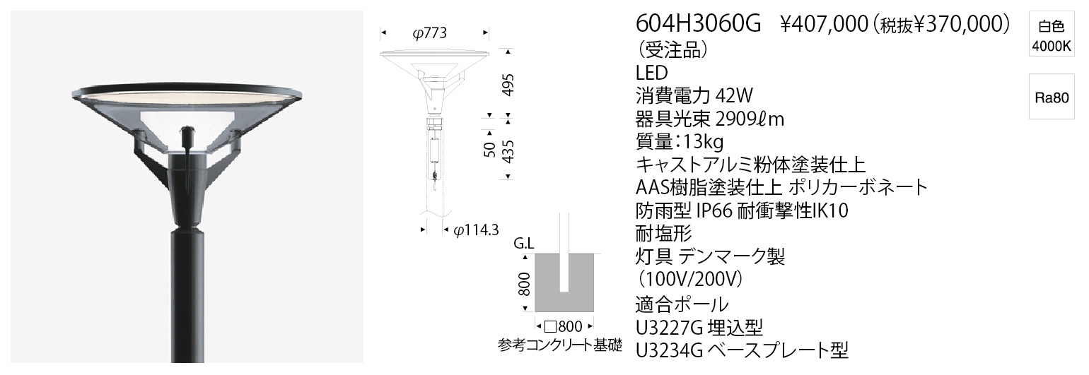 - 灯具:キャストアルミ粉体塗装 プラスチック塗装仕上 ポリカーボネート