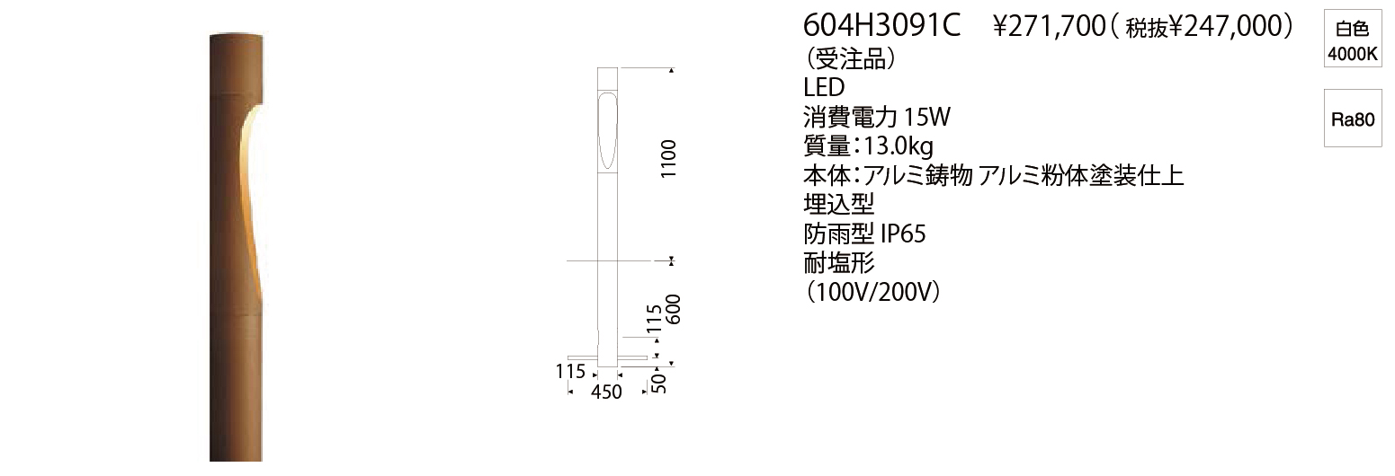 - 高・1100 巾・φ115 奥・450 埋込深・600 全長・1700mm