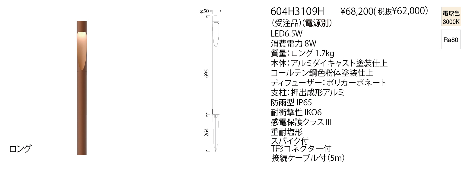 - 本体:アルミダイキャスト塗装仕上 ディフューザー:ポリカーボネイト 支柱:押出成形アルミ塗装仕上