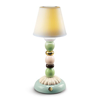 ホタルの放つ不思議な光に発想を得て生まれた、充電式のテーブルランプコレクション。蓮の葉やヒマワリ、ヤシの木やサボテンなど植物をモチーフにデザインされています。本体は艶のあるポーセリン、シェードも磁器でできています。本体正面のロゴの入ったスイッチにより調光が可能です。ソファや寝室のサイドテーブルやダイニングテーブルの上、テラスでの安らぎの時間など、様々なシーンで優しい灯りを楽しめます。