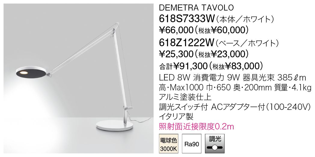 ギリシャ神話の女神でゼウスの姉の名前の付いたデメトラは、日本を代表するプロダクトデザイナー、深澤直人による シンプルでミニマルなデザインに軽やかに動くアームや調光可能なLED光源など多くの機能が見事に融合されたタスクライトです。