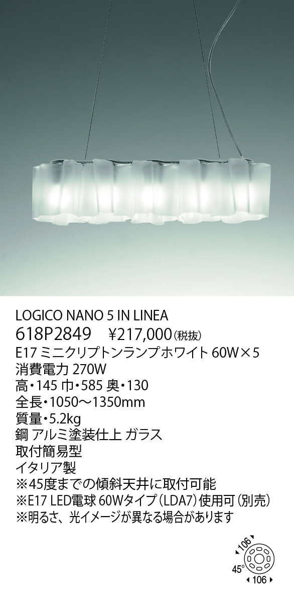 LOGICO NANO 5 IN LINEA(生産完了品) 618P2849 オープン価格 生産完了品 Main Spec Download データダウンロード チェックしたファイルをダウンロードします。 チェック全てをダウンロード 全て選択 小組画像 仕様図 取扱説明書 姿図1 姿図2 配光データ IESデータ 商品画像 3D CAD REVITデータ