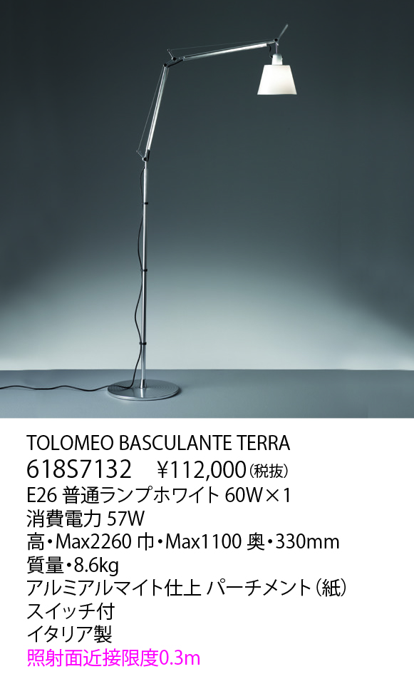 人気のトロメオを大型化したスタンドです。ダイニングテーブルやソファサイドなど、アームの可動によりフレキシブルな光を提供します。