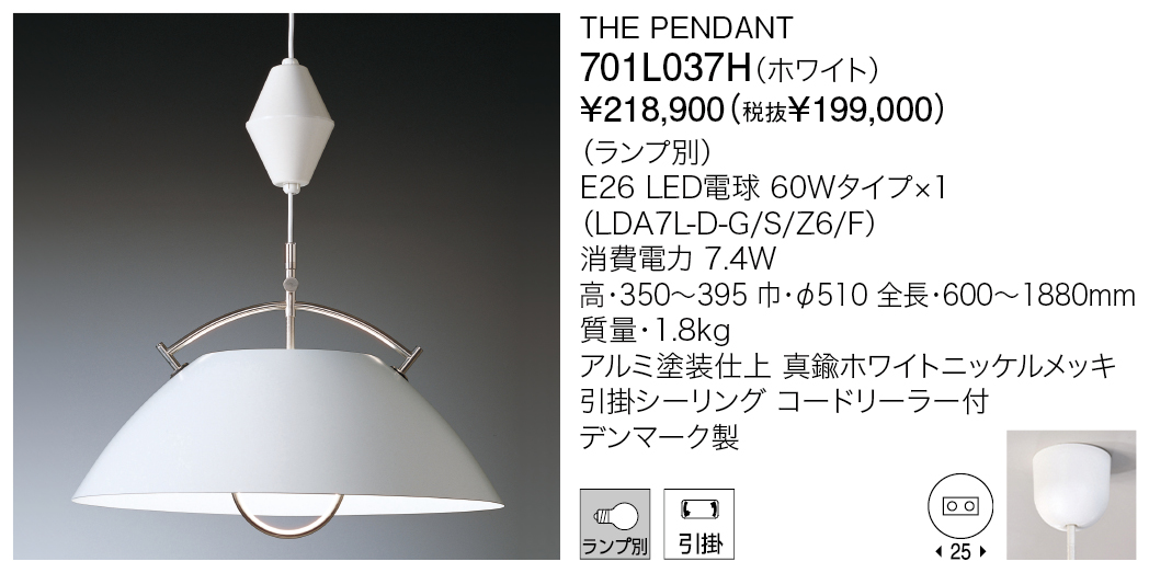 ザ・ペンダントはスカンジナビアモダンを代表する家具デザイナー、ハンス・J・ウェグナーがデザインしたペンダントです。人と道具との関係を有機的にとらえたフォルムと機能性を持っています。コードリーラーでペンダントの高さをフレキシブルに調節でき、状況に合わせて光の広がりやテーブル面の明るさをコントロールすることができます。セード内のランプ位置も変えられ、光の広がりやランプの見え具合も調節できるなど、使う人のための工夫が盛り込まれています。