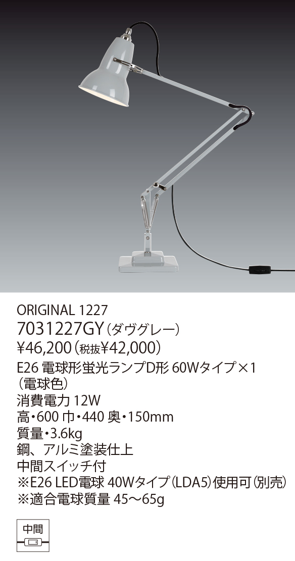 ジョージ・カワーダインが1930年代初期にデザインしたOriginal 1227 の復刻版。2009年、ANGLEPOISE 誕生75周年を記念して再発売されました。「英国を代表する10のデザイン」としてロイヤルメールの記念切手にも選ばれたアングルポイズを象徴するモデルです。オフィスや家庭で、またクラシカルからモダンまで幅広いインテリアにマッチするデザインです。