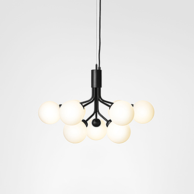 エピエレスは、幼い頃の夏の思い出、祖父のコッテージの側に咲くセリの野草や北欧の長い夏の夕暮れ、あたりに広がる美しい自然をインスピレーションに生まれました。吹きガラスのグローブを構成する灯具は花のつぼみを支える茎をイメージにデザイン。ネジや結合部を見せないディテールにまでこだわった可憐でいてエレガントなシャンデリアです。