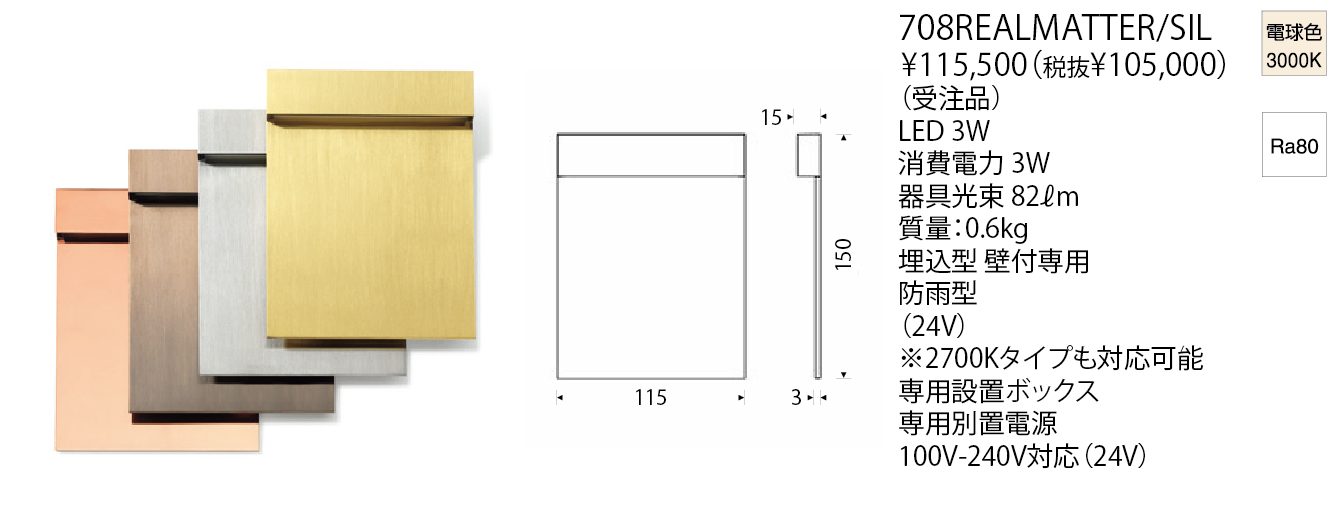 リアルマターはピエロ リッソーニがデザインしたブラケットです。出寸法僅か15mmで4種類の仕上げが選べます。設置後微調整が可能です。電源ドライバーは別置きになります。