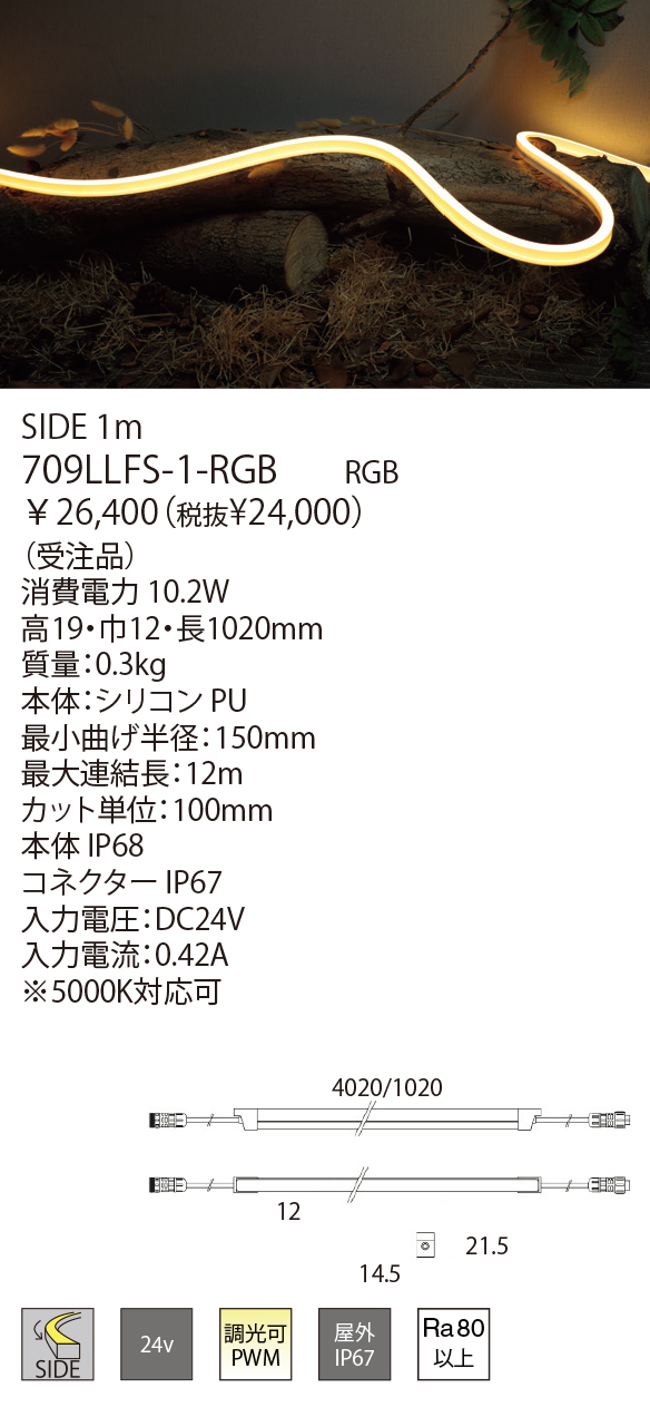 曲げ加工のできる屋外使用が可能なLEDラインモジュールです。LEDのドットを感じさせない連続した光が特徴です。単色タイプは5つの色温度からお選びいただけます。調光調色タイプは調光器との組合せで2700K〜6000Kの色温度が選べます。RGBタイプは調光器との組合せで任意のカラー演出が可能です。
