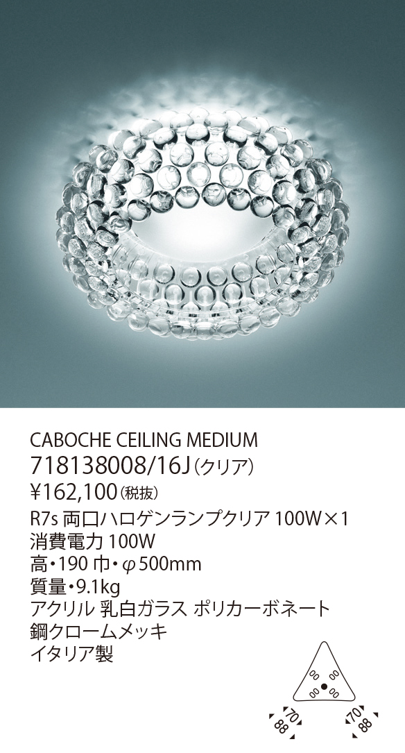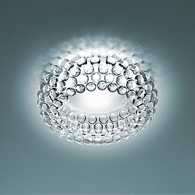 パトリシア・ウルキオラとエリアナ・ジェロットによるペンダント「カボシェ」。アクリル樹脂製の球体が煌めき、幻想的な空間を演出します。デザインのインスピレーションは、30年代の子供用のプラスチック製のブレスレットから。キラキラした小さなパール色の玉が集まったブレスレットと、クリスタルの煌めきとイメージを重ね合わせ誕生しました。