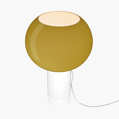花のつぼみをモチーフにデザインされたバッズ。3つのフォルムとカラーの展開があるシェードは、ハンドクラフトでつくられた5層の吹きガラスでできており、素材の美しさが最大限生かされています。シェードの内側には黄色味を帯びた仕上げが施してあり、点灯するとより一層あたたかみのある表情を見せます。スタンドの支柱は透明な無垢のアクリル製。ガラスが浮遊しているように見え重力の存在を忘れます。