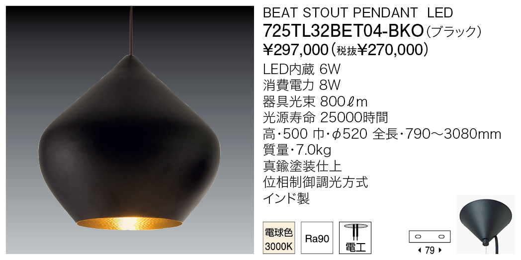 インドで日常的に使われていた真鍮製の水甕にインスピレーションを受け形づくられた「ビート」シリーズは、インドで急速に消えつつある真鍮工芸の保護を念頭に、熟練工により一つ一つセード内側に槌目加工を施し製作しています。個体ごとに異なる槌目や小さな歪みなどは、機械工程によらない手加工ならではの個性。不完全さを愛でる日本人の美意識を刺激します。
