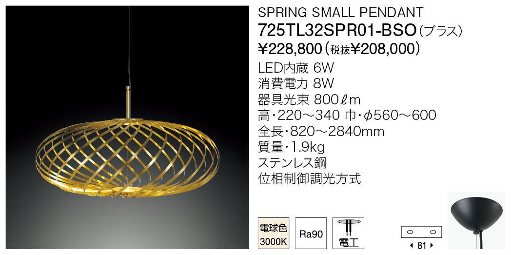 スピログラフで描いた図形を立体成型したようなフォルムが特徴のスプリング。リボン状のステンレスで構成されたシェードは好みにより厚みを変えることが可能です。直径のバリエーションに加え厚みの変化を付けることで、多灯の際、空間にリズムが生まれます。