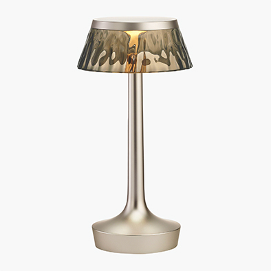 ボンジュールは、本体とバリエーション豊富なシェードをお好きに組み合わせることができ、独自の創造性にあふれた、オリジナルのテーブルスタンドとして楽しめるシリーズです。ボンジュールアンプラグドオプティックは、ベース部分のマイクロUSBコネクタより充電し、最長6時間点灯が可能なコードレステーブルランプです。ベースに5段階オプティカルセンサースイッチを搭載しています。