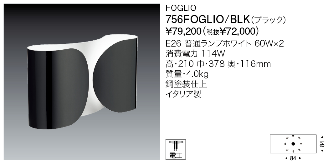 フォリオは、トビア・スカルパによって1966年にデザインされたウォールランプの名作。1枚のスチールを左右対象に折り曲げたシンプルかつモダンなデザインで、半世紀以上経ってもなお色褪せないプロダクトです。
