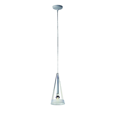 フーシアはイタリアを代表するデザイナー、アッキーレ・カスティリオーニによるペンダントです。フロスト加工が施されたガラスシェードは、あたかもリングが空中に浮かんだように発光します。ガラスシェードのエッジ部にはセードどうしの接触に対してプロテクターとなるシリコンゴムのリングが施されています。