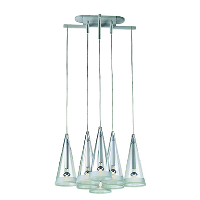 フーシアはイタリアを代表するデザイナー、アッキーレ・カスティリオーニによるペンダントです。フロスト加工が施されたガラスシェードは、あたかもリングが空中に浮かんだように発光します。ガラスシェードのエッジ部にはセードどうしの接触に対してプロテクターとなるシリコンゴムのリングが施されています。