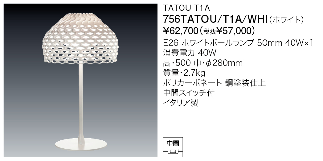 タトウは、いま世界で最も注目されるデザイナーの1人であるパトリシア・ウルキオラによってデザインされました。連続した網目状の美しいパターンは日本の古い武具の鎧からインスピレーションを得ています。そこからこぼれる光はレースを陽の光にかざした時のような美しさと懐かしさを喚起させ、女性らしい感性が光っています。