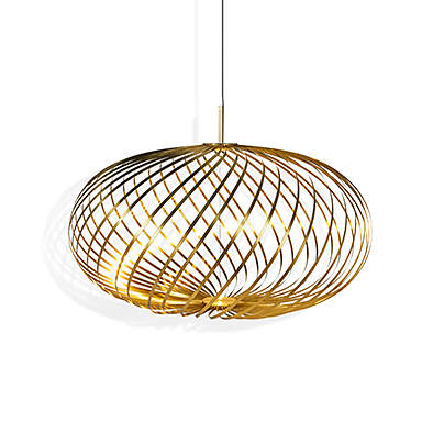 スピログラフで描いた図形を立体成型したようなフォルムが特徴のスプリング。リボン状のステンレスで構成されたシェードは好みにより高さを変えることが可能です。直径のバリエーションに加え高さの変化を付けることで、多灯の際、空間にリズムが生まれます。