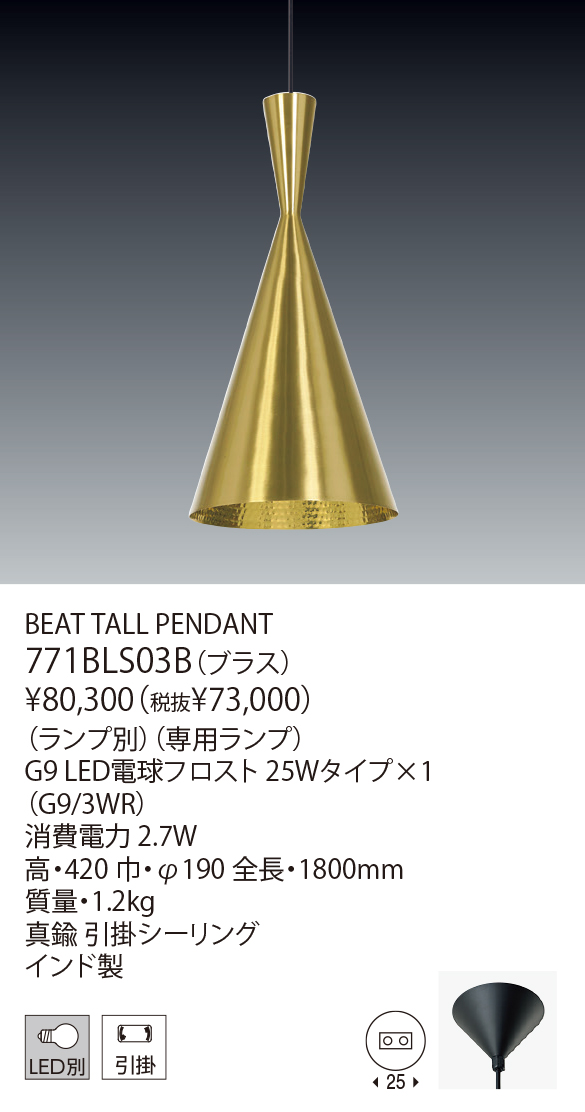 インドで日常的に使われていた真鍮製の水甕にインスピレーションを受け形づくられた照明「ビート」シリーズは、インドで急速に消えつつある真鍮工芸の保護を念頭に、熟練工により真鍮の手打加工を施して製作され、高度な溶接技術も相まって、工芸品のような仕上がりとなっています。