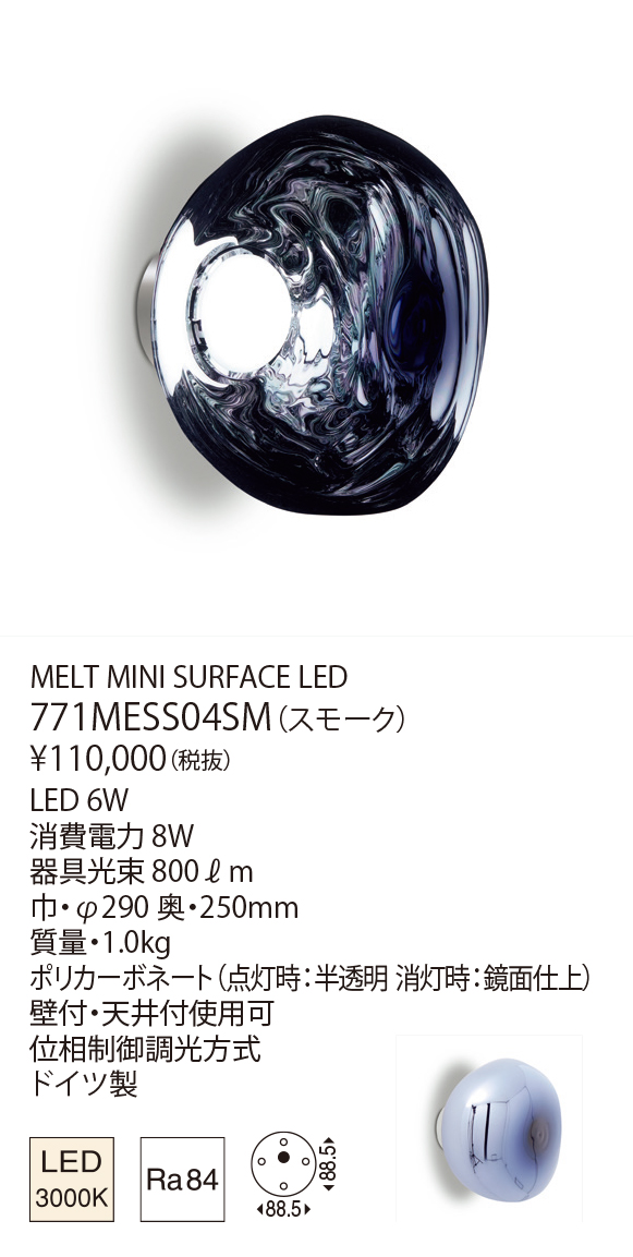スウェーデンのデザイングループ「FRONT」とのコラボレートにより生まれたメルトのLEDモデルです。高温で熱せられたガラスのようなシルエットを持ち、見る角度によって意匠が大きく変化するシェードが特徴のメルト。新たに開発したオリジナルの内蔵型LEDを使用することで、従来のメルトとは一味違う、より深みのある光のオブジェとして生まれ変わりました。
