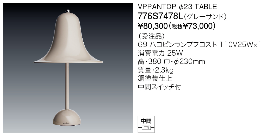 1980年にデザインされたVPパントップ。フレアにすそが広がったセードと半球型のベース部は、独創性が高くもどこか可愛らしさを感じさせるヴァーナー・パントンのデザイン哲学を色濃く受け継ぐ作品です。ダイニングテーブルやキッチンカウンター、オフィスの会議室など様々な場面で、1灯はもちろん多灯でコーディネーションすると魅力がさらに増します。