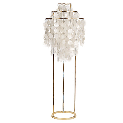 ファンシリーズは1964年にメタルタイプが先にデザインされています。丸いメタルの集合体は光と色を反射して豊かな色彩を生み出し、1950〜70年代に流行した近未来をほうふつとさせるスペースエイジ・デザインを代表する作品のひとつになっています。シェルタイプはパントンの新たな取り組みの中でシリーズに追加されましたが、透過する光はやさしく、風に揺れると繊細な音を奏でてくれます。ファンシリーズは、ペンダント、スタンド、素材、サイズなどが揃い、多様な空間を演出します。