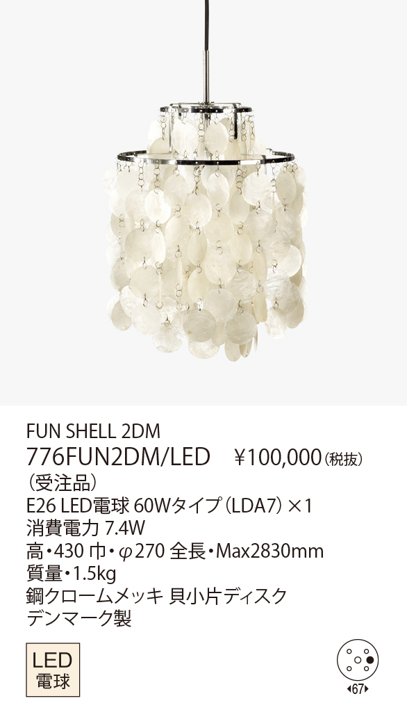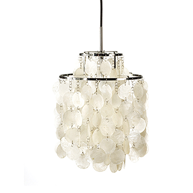1964年にデザインされたファン・シリーズは、ヴァーナー・パントンの最高傑作のひとつとされています。光の陰影が魅力的な貝で作られたディスクのモデルと、光の反射が美しい金属ディスクのモデルが揃います。サイズバリエーションも豊富で、多様な空間を演出します。スペースエイジ・デザインを象徴する作品の一つです。