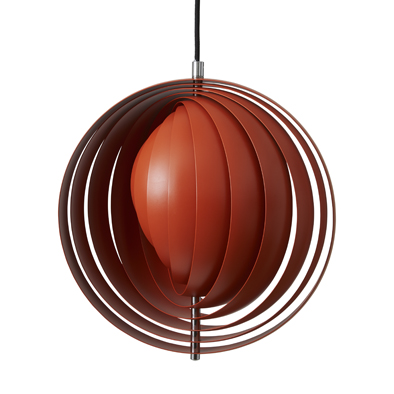 1960年にデザインされた「ムーン」は、中央の支柱を中心にサイズの異なるスチール製リングをまわして少しずつ位置をずらしていくことで、シェル状のシェードを形成。美しい光の陰影が楽しめます。