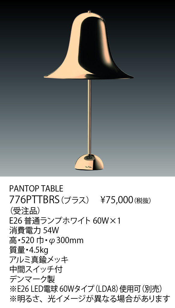 PANTOP TABLE(生産完了品) 776PTTBRS オープン価格 生産完了品 Main Spec Download データダウンロード チェックしたファイルをダウンロードします。 チェック全てをダウンロード 全て選択 小組画像 仕様図 取扱説明書 姿図1 姿図2 配光データ IESデータ 商品画像 3D CAD REVITデータ