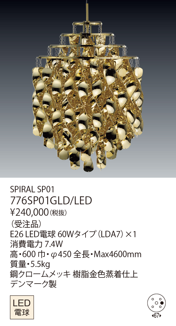 スパイラル・シリーズは、 1970年のケルン国際家具見本市における伝説のインスタレーション「ヴィジョナ2」のために、 ヴァーナー・パントンが1969年にデザインしたもので、 彫刻的要素の高い作品です。螺旋状にねじられたアクリル板が作り出す、 エレガントな煌きが印象的です。斬新なデザインのようで、 クラシカルなクリスタルビーズ・シャンデリアのスタイルを採用しています。