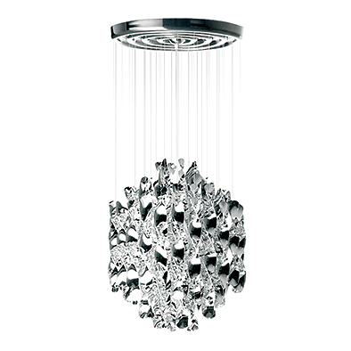 スパイラル・シリーズは、 1970年のケルン国際家具見本市における伝説のインスタレーション「ヴィジョナ2」のために、 ヴァーナー・パントンが1969年にデザインしたもので、 彫刻的要素の高い作品です。螺旋状にねじられたアクリル板が作り出す、 エレガントな煌きが印象的です。斬新なデザインのようで、 クラシカルなクリスタルビーズ・シャンデリアのスタイルを採用しています。