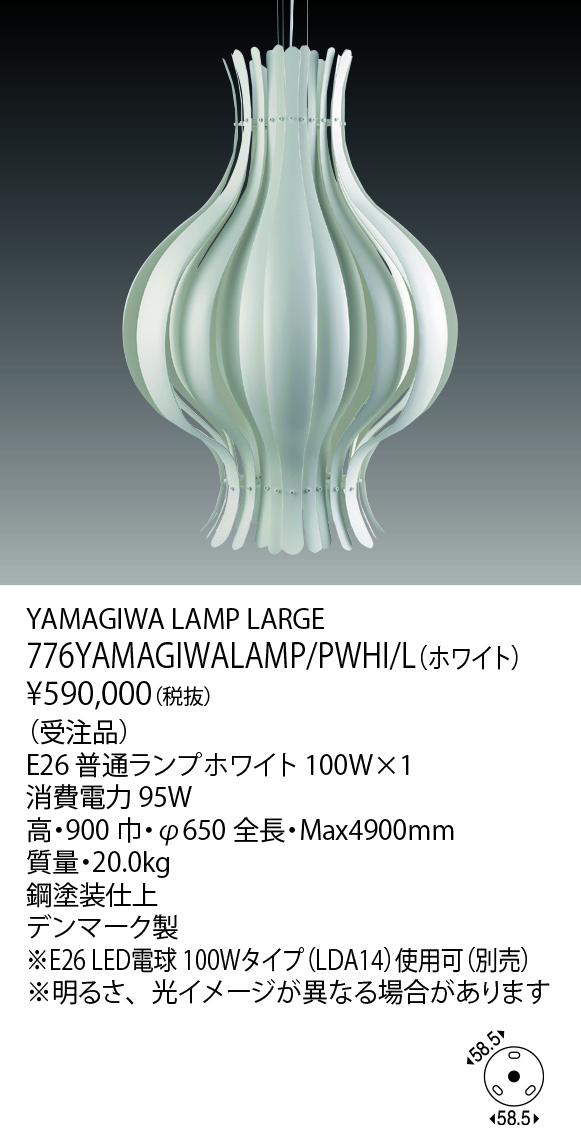 YAMAGIWA LAMP LARGE(生産完了品) 776YAMAGIWALAMP/PWHI/L オープン価格 生産完了品 Main Spec Download データダウンロード チェックしたファイルをダウンロードします。 チェック全てをダウンロード 全て選択 小組画像 仕様図 取扱説明書 姿図1 姿図2 配光データ IESデータ 商品画像 3D CAD REVITデータ