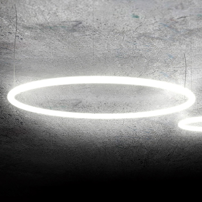 Alphabet of light CircularはStand-alone-Suspensionの器具です。手軽にAlphabet of lightを楽しめます。Alphabet of light CircularはΦ900mm/Φ1550mmの直径の異なる2つのサークルのバリエーションです。使用目的に合わせてお選びください。