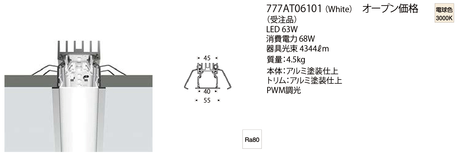 A.39は、袋具巾55mmで、3タイプの本体を目的の長さに合わせて連結して使用する高効率なライン照明です。90°のコーナー用の本体もあり、目的の室内設計に合わせて思い通りの光がデザインできます。本体は連結して使用しますが、下面のディフューザーは一体のため継ぎ目のない美しく連続した光が実現できます。光色は電球色(3000K)・白色(4000K)の2タイプがあります。