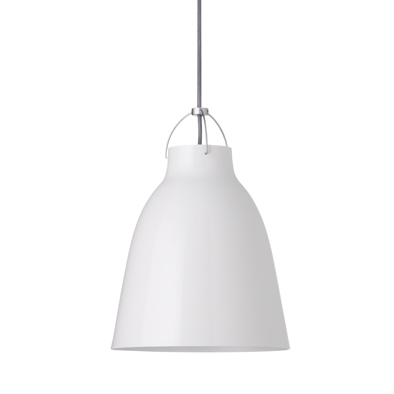 カラヴァッジオは、2005年の発表を経てデザインアイコンになりました。シンプルなカラヴァッジオは、やわらかくフェミニンなフォルムのシェードとは対照的に、ホルダー部分は男性的なデザインになっています。またテキスタイルケーブルは、デザインの大事な要素となっています。下方面への光と同時にシェード上部の開放部から漏れる光は、サスペンションとケーブルの表情を引き立てます。シェード内部の光源を高めに設定したことによりグレアフリーな仕様に仕上げました。