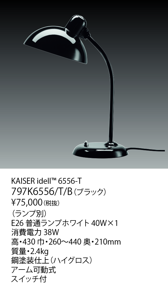 FRITZ HANSEN(フリッツ・ハンセン/デンマーク) KAISER idell™ 6556-T(カタログ非掲載) 797K6556/T/B オープン価格 Main Spec Download データダウンロード チェックしたファイルをダウンロードします。 チェック全てをダウンロード 全て選択 小組画像 仕様図 取扱説明書 姿図1 姿図2 配光データ IESデータ 商品画像 3D CAD REVITデータ