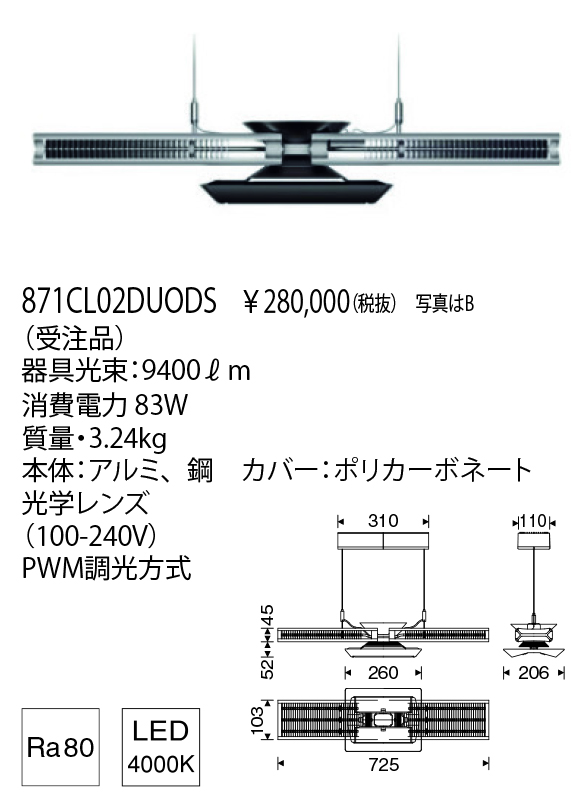 LEDを冷却するヒートパイプテクノロジーを搭載したペンダント照明。強力な光で必要な範囲を正確に照射します。