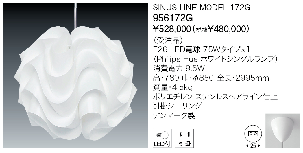 1971年、ポール・クリスチャンセンによってデザインされたサイナスラインは、それまでの直線的に折られていたシェードに対しカーブを多用。斬新で独特な彫刻的フォルムは、新たなレ・クリントデザインの方向性を確立しました。