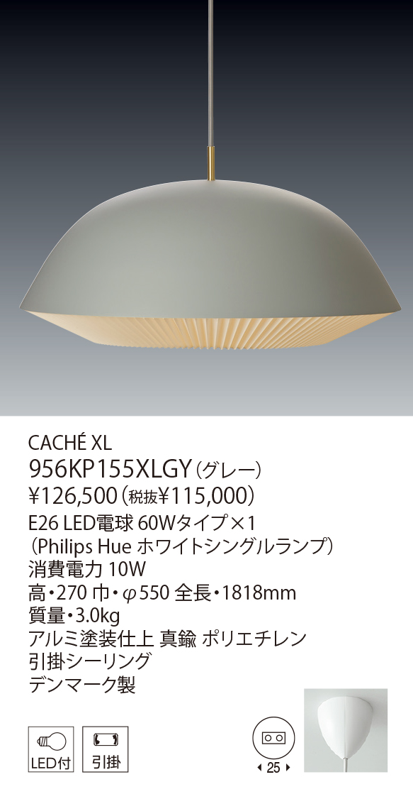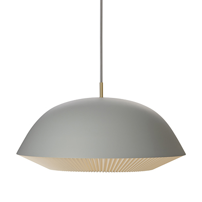 キャシェとはフランス語で「かくれんぼ」の意味で、その名の通りシェードの内側に隠れるように見えるプリーツが特徴です。金属のプレーンなシェードと、樹脂製シートのもつ柔らかく温かみのある内側からの灯りが、対照的ながらも美しく印象に残るデザインとなりました。