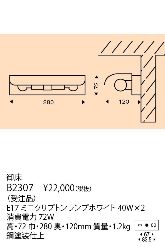 - 高・72 巾・280 奥・120mm