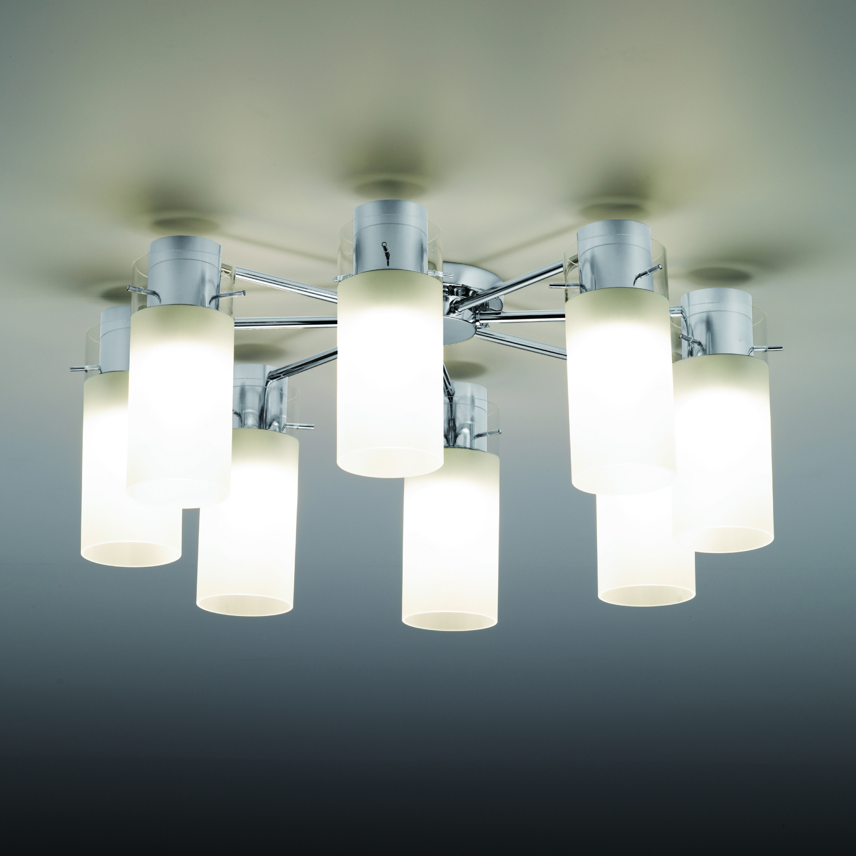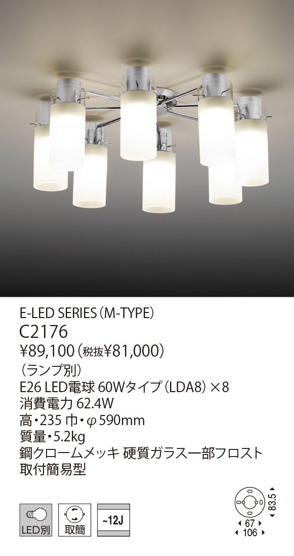 E-LEDシリーズは、EベースのLED電球に対応した住宅用のシャンデリアシリーズです。M-TYPEの直線を基調としたシリンダー状の硬質ガラスのシェードは、光があたる部分にフロスト加工が施され、やわらかな光を拡げます。