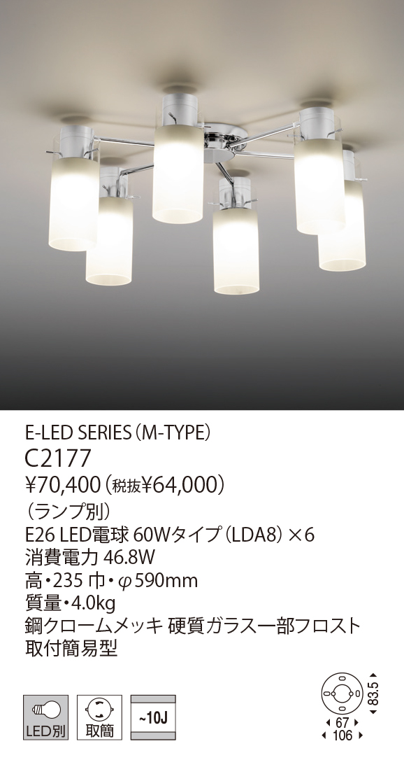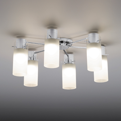 E-LEDシリーズは、EベースのLED電球に対応した住宅用のシャンデリアシリーズです。M-TYPEの直線を基調としたシリンダー状の硬質ガラスのシェードは、光があたる部分にフロスト加工が施され、やわらかな光を拡げます。