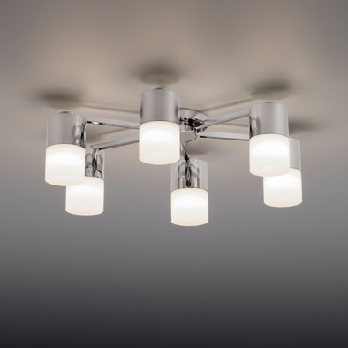 E-LEDシリーズは、EベースのLED電球に対応した住宅用のシャンデリアシリーズです。C-TYPEの乳白色のシリンダー状のガラスシェードは、光をやさしく拡散します。