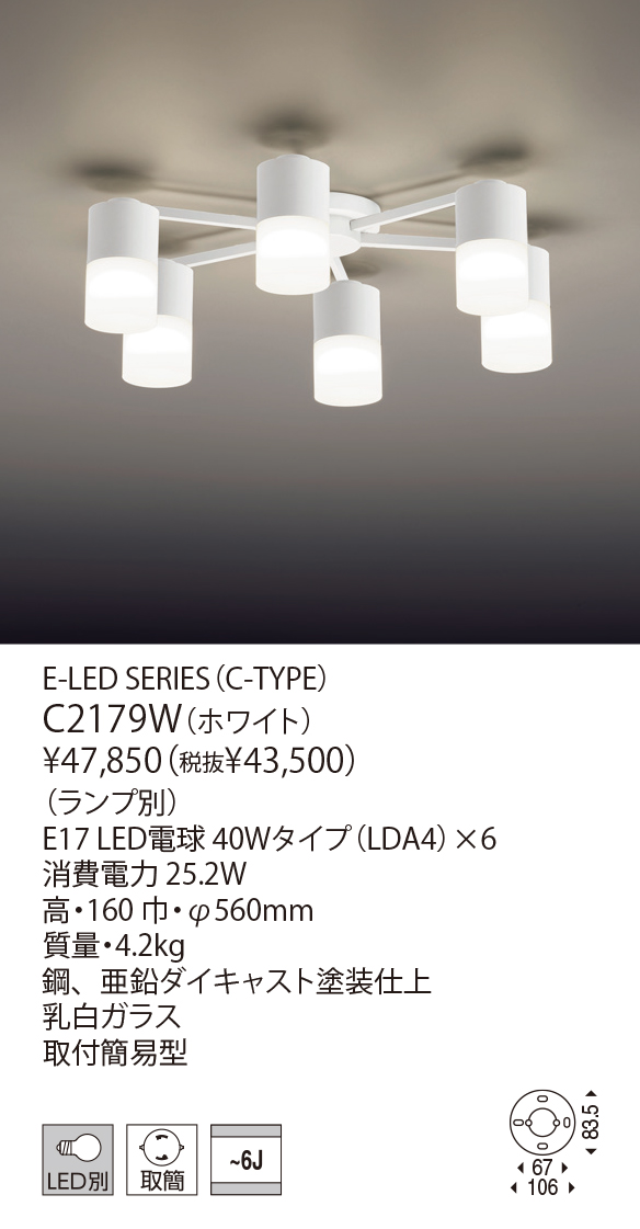 E-LEDシリーズは、EベースのLED電球に対応した住宅用のシャンデリアシリーズです。C-TYPEの乳白色のシリンダー状のガラスシェードは、光をやさしく拡散します。